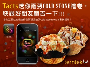 為感謝大家對於Tacts的支持 本活動增加一個特別獎項”ColdStone經典冰淇淋兩客”一名一名並於10月22日抽出幸運者。